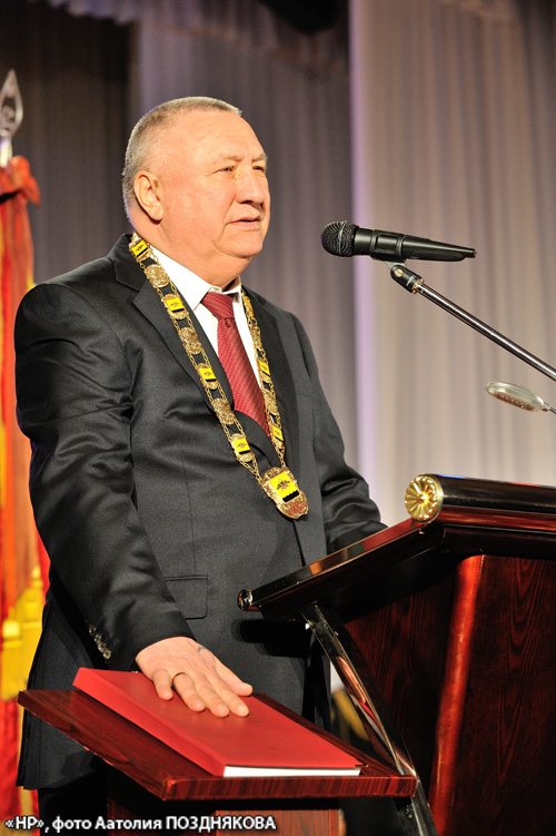 «САМ ГЕРОЙ ДНЯ, – пишет «НР» за 28 ноября 2002 года, – выйдя к микрофону, начал с фразы «Чувствую, у вас закономерный вопрос: кого привезли?» – и в коротком выступлении сказал, что понимает – обещать можно многое, но пока не сможет показать работу, это все останется словами. Подчеркнул, что не любит заниматься политикой. Попросил население и городских депутатов поддержать его в желании решить городские проблемы».
